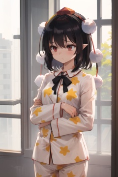 aya body,1girl,solo,shameimaru aya,<lora:shameimaru aya nai005:0.6>,print_pajamas,