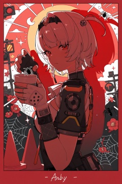 1girl,::,__artist__,year 2024,(drop shadow:1.4),(close-up:0.8),(shadow:1.2),(hands up:1.2),(border:1.2),(outside border:1.2),(hand up:1.2),(character name:1.2),from side,hand up,closed mouth,red eyes,upper body,high contrast,holding cup,frown,looking at another,looking at viewer,rope,portrait,drop shadow,sparkle,^ ^,flag,limited palette,moon,yin yang,bug,notice lines,cloud,spider,traffic cone,star \(symbol\),circle,silk,traffic light,arrow \(symbol\),spider web,red theme,sun,cube,crescent moon,flower,sunlight,colorful,very awa,masterpiece,best quality,newest,highres,absurdres,<lora:anbinew-ill-Tanger-000013:0.9>,anby demara \(silver soldier\),clothes: silver soldier black and white short dress,silver soldier clothes,1girl,black knee boots,fingerless gloves,hairband,