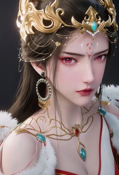 perfect_anatomy,score_9,(upper_body:1.1),looking_at_viewer,<lora:YQ_pony_hongdie_V4:0.8>,q1528437228,solo,1girl,jewelry,long_hair,earrings,hair_ornament,black_hair,dress,necklace,red_eyes,facial_mark,forehead_mark,red_dress,fur_trim,brown_hair,bare_shoulders,perfect_anatomy BREAK perfect_anatomy,simple background,black background,(shiny_skin),(Ivory_skin:1.1),(cinematic lighting),