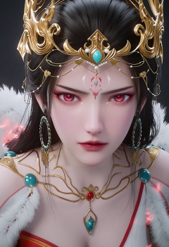 perfect_anatomy,score_9,(upper_body:1.1),looking_at_viewer,<lora:YQ_pony_hongdie_V4:0.8>,q1528437228,solo,1girl,jewelry,long_hair,earrings,hair_ornament,black_hair,dress,necklace,red_eyes,facial_mark,forehead_mark,red_dress,fur_trim,brown_hair,bare_shoulders,perfect_anatomy BREAK perfect_anatomy,simple background,black background,(shiny_skin),(Ivory_skin:1.1),(cinematic lighting),