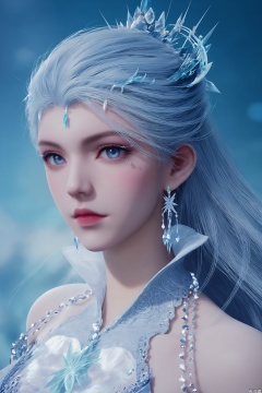 Close-up details,realistic style photo outstanding style,tall,cute,in her teens. Use soft lighting to cast gentle shadows on the subject,adding a touch of dimension to your images without compromising details,score_9,score_8_up,score_7_up,looking at viewer,1girl,long,flowing silver hair,a delicate, silver tiara on head,wears a form-fitting,intricate gown made of delicate,gossamer fabric,which appears to be made of ice,with a shimmering,icy texture,