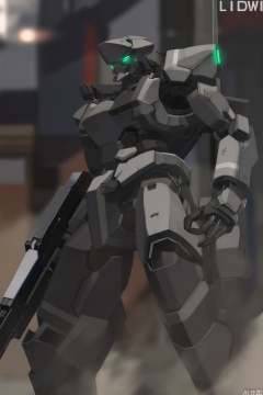 solo, holding, weapon, holding weapon, gun, no humans, glowing, robot, holding gun, mecha, glowing eyes, science fiction,aerion,