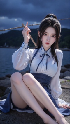 1girl, night dress,looking at viewer, mischevious smile, perfect body, scenery, sharp focus, best quality, masterpiece, detailed outfit, illustration, perfect eyes, finely detailed beautiful anime eyes, realistic skin, intricate details, best lighting, depth of field, ultra high resolution,sitting, full_body,bare legs,crossed legs