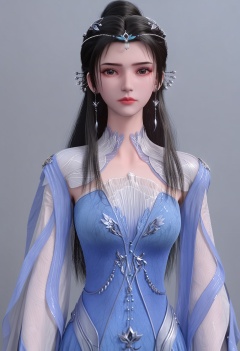 score_9,high detail,best quality,cinematic lighting,volumetric lighting,shiny skin,shiny,nsfw,1girl,solo,black_eyes,breasts,earrings,jewelry,realistic,dress,long hair,blue dress,black hair,looking at viewer,simple background,expressionless,hair ornament,closed mouth,tiara,long sleeves,upper_body,thighs,<lora:QQSponylimuwanshufaV1:0.8>,<lora:Pony_DetailV2.0:0.8>,<lora:皮肤凹痕:0.1>,