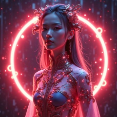 JQZX,Best picture quality,realistic,photography,good work,Best picture quality,8K,HDR,High quality,girl,3D stereoscopic face,white skin,delicate features,indifferent expression,looking down camera,Chinese costume,Holographic projection,Holographic belt,Holographic halo,fluorescent,Long hair,hair accessories,earrings,bracelets,Cyberpunk,Mecha,Model pose,A photo full of tension,red sky and visual impact,Fairy,Taoist,Energy fluid,Glow,Light Particle effect,Floating energy scroll,best picture quality,Masterpiece,8k,OC renderer rendering,futuristic,3D rendering,