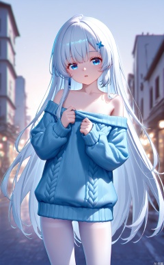 white_background,cowboy_shot,off_shoulder_sweater, white_pantyhose, soft_knit, cozy_style