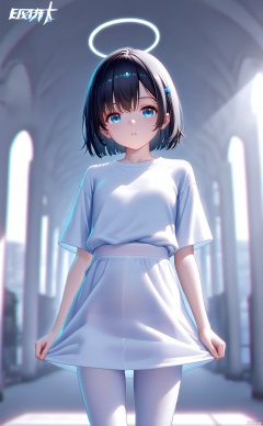 white_background,cowboy_shot,short_sleeve_shirt, white_pantyhose, soft_fabric, casual_style
