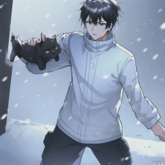 1boy,solo,snow,stronghold,Combat Uniform,Black cat