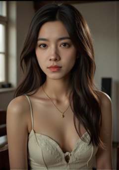 (text "Buzz Me Please" in sky:1.6),There are wonderful studio lights and various reflections,18yo girl her face is very delicate,skin naturally showing the texture of blood vessels and detailed pale skin,<lora:flux_realism_lora>,<lora:zhuangdf_f1_epoch_11:1>,chinese actress,bright photo of beautiful asian girl with long wavy hair wearing bohemian dress,inside a rustic house with windows,necklace,realistic light reflections,pale skin,,