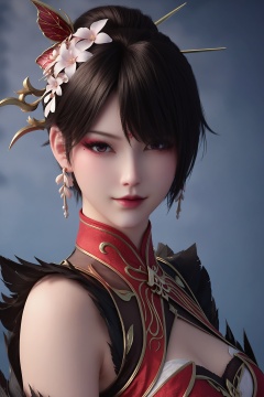 realistic style photo outstanding style,tall,cute,in her teens. Use soft lighting to cast gentle shadows on the subject,adding a touch of dimension to your images without compromising details,score_9,score_8_up,score_7_up,looking at viewer,upper body,<lora:御姐穆红绫Pony:0.7>,dark hair elegantly styled with a flower-adorned hairpin. wears a form-fitting,red dress with intricate golden embroidery and a high collar,