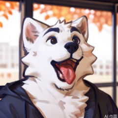 solo, open mouth, tongue, tongue out, blurry, black eyes, furry, animal, cat, meme, realistic, animal focus, whiskers,Fur_soft
