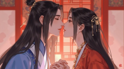 唯美古风情侣插画手绘风格 - v1