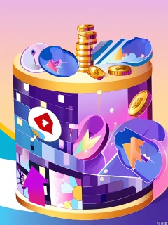 XSYY, A vibrant, abstract digital artwork featuring a mix of geometric shapes and symbols, including gold coins, dollar signs, arrows, and buildings, all set against a gradient background transitioning from pink to blue. The colors are predominantly shades of blue, purple, and gold, creating a dynamic and energetic feel. The shapes overlap and intersect in a complex, layered composition, giving the impression of depth and movement. The style is modern and minimalist, with a focus on bold, contrasting colors and clean lines.