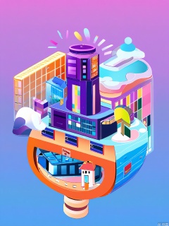 XSYY, A vibrant, futuristic cityscape illustration featuring tall, blue and purple skyscrapers with rounded edges, a winding highway, and a lighthouse in the background. The buildings have a sleek, modern design with reflective surfaces and geometric shapes. The sky is filled with soft, glowing clouds, and there are flying vehicles and drones zipping around. The color palette is dominated by shades of blue, purple, and white, creating a cool, otherworldly atmosphere. The overall style is clean and polished, with a focus on futuristic urban architecture and advanced transportation.
