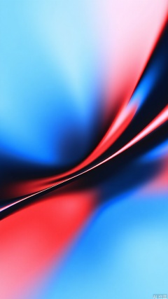 LTTX, Abstract digital artwork featuring smooth, flowing lines and shapes. Dominant colors are shades of blue and red, with a gradient effect creating a sense of depth and movement. The composition is dynamic, with no discernible objects or figures, emphasizing a fluid, almost liquid-like texture. The style is reminiscent of digital painting or 3D rendering, with a polished, glossy finish. The background is a soft, pastel blue, while the foreground features darker, more saturated hues. The image is signed by the artist in the bottom right corner.