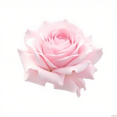 HYS, Photograph of a single, fully bloomed pink rose with soft, velvety petals. The rose is centered against a plain white background, creating a serene and elegant composition. The petals are gently curled at the edges, giving the flower a delicate and romantic appearance. The lighting is soft and even, highlighting the natural texture and color gradient of the rose. The overall mood of the image is calm and sophisticated.