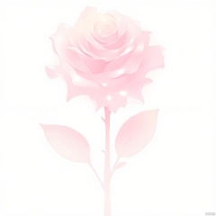 HYS, A digital artwork of a delicate, pink rose with a soft, ethereal glow. The rose has a velvety texture, with petals that appear almost translucent, giving it a dreamy, otherworldly quality. The stem is slender and green, with a few leaves that are also pink, matching the color of the rose. The background is pure white, making the rose the focal point of the image. The overall style is soft and romantic, with a gentle, glowing light source that highlights the rose's beauty. The image conveys a sense of elegance and purity.