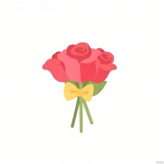 HYS, A simple digital drawing of a bouquet of red roses with green leaves, tied together with a yellow ribbon. The roses are in full bloom, with the petals vividly colored. The background is plain white, making the flowers stand out. The style is clean and minimalistic, with smooth lines and flat colors. The bouquet is positioned slightly off-center, with the stems and leaves extending downwards. The overall aesthetic is fresh and elegant, suitable for a greeting card or a romantic theme.