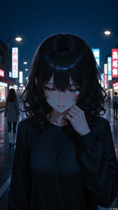 -Overall: Presenting characters in a nighttime street scene, with a lonely and desolate atmosphere.