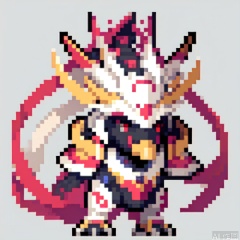 solo, simple background, red eyes, standing, full body, pokemon \(creature\), no humans, transparent background,SoulKnight,pixel style