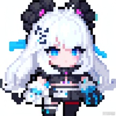 1girl, solo, long hair, looking at viewer, bangs, blue eyes, simple background, black hair, white background, blue hair, white hair, multicolored hair, virtual youtuber, transparent background,SoulKnight,pixel style