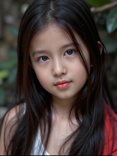 10yo girl, cleavage,solo, long_hair, lips, realistic, closed_mouth, black_hair,