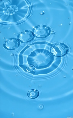 SBW, A close-up photograph of water droplets on a blue surface, likely a pool or a body of water. The droplets vary in size, some larger and some smaller, creating a dynamic and textured pattern. The water has a slight ripple effect, with gentle waves and light reflections. The overall color palette is dominated by different shades of blue, giving the image a calming and serene atmosphere. The image captures the natural beauty of water and the play of light on its surface.