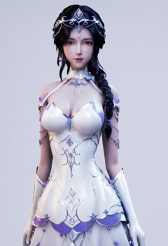 score_9,<lora:SF_BaiYue_Pony_Realism2.3-000004:0.7>,1girl,solo,hair ornament,large breasts,black hair,braid,dress,standing,gloves,looking at viewer,white background,simple background,