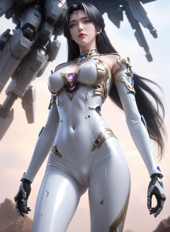 score_9,score_8_up,score_7_up,1girl,solo,breasts,long hair,blue eyes,bodysuit,lips,mecha musume,medium breasts,covered navel,cowboy shot,science fiction,skin tight,joints,<lora:wy_monv_XL5.0:0.8>,black hair,