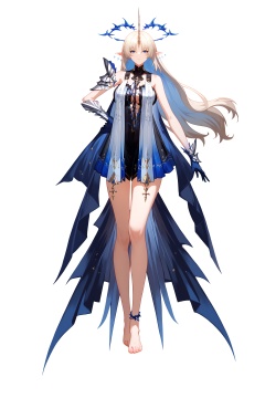 score_9,score_8_up,score_7_up,score_anime,8k,best quality,masterpiece,(ultra-detailed),(high detailed skin),(by nanoless, by misumi \(macaroni\),:0.5),<lora:YLI 0.1v:0.25>,<lora:style1:0.25>,A full-body portrait of a young girl,standing gracefully,pastel art style,high-key lighting,shoujo manga influence,hd quality,delicate details,full body,full shot,standing,looking at viewer,(solo:1.2),simple background,white background,hand on own hip,<lora:Cartethyia&Fleurdelys-pony-Tanger-000019:0.8>,Fleurdelys \(wuthering waves\),clothes: Fleurdelys ***** style clothes,large blue levitating spiked circlet,Fleurdelys white and black dress,forehead mark with forehead horn,blue long detached train clothes,1girl,long hair,pointy ears,barefoot,jewelry,mature female,