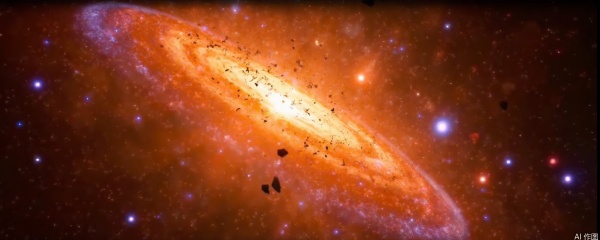 At the moment of the Big Bang presented by Digital CGI art, colorful light bursts from an origin to the surroundings, and fragments and energy waves spread wildly in the void. The surrounding space is illuminated by light, and the outlines of other galaxies can be vaguely seen in the distance, and the whole scene is full of shock and fantasy.