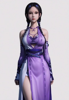 score_9,<lora:SF_XiaoShiMei_Pony_Realism2.3-000003:0.7>,1girl,solo,black hair,hair ornament,large breasts,forehead mark,dress,standing,twin braids,looking at viewer,white background,simple background,