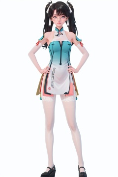 8k, best quality, masterpiece, (ultra-detailed), (white background,simple background), solo, (hands on hip:1.1), (full body:1.1), looking at viewer, <lora:zhezhi-sd-Tanger:0.8>, zhezhi, default clothes, white pantyhose, 1girl, long hair, black hair, glasses, twintails, dress, black footwear, chinese clothes,