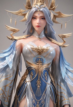 score_9,high detail,best quality,cinematic lighting,volumetric lighting,shiny skin,shiny,1girl,solo,blue eyes,white_hair,long hair,blue dress,hair ornament,jewelry,white background,earrings,mole under eye,dress,breasts,simple background,closed mouth,makeup,long sleeves,looking at viewer,cowboy_shot,<lora:QQSponyningyudiedujieV1:0.8>,<lora:Pony_DetailV2.0:0.8>,<lora:皮肤凹痕:0.1>,