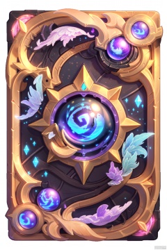 The image depicts a small, spherical object with a glossy, iridescent surface. The sphere is predominantly purple, with a gradient that transitions from a darker shade at the top to a lighter one towards the bottom. There are several small, star-like shapes scattered across the surface, each consisting of a yellow star and a smaller, triangular shape. The background is completely black, which makes the purple sphere stand out prominently. The overall appearance suggests a stylized, possibly digital or artistic representation of a celestial object.HearthStone,card back