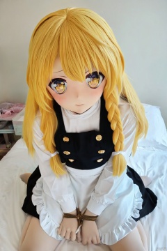 voluminous blonde hair with uneven bangs, strands sticking out,
