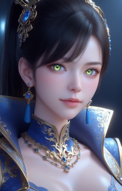 score_9,score_8_up,score_7_up,source_anime,<lora:qingxuan_qinglin_PONY:0.7>,1girl,solo,jewelry,earrings,black hair,green eyes,ponytail,looking at viewer,blush,(curvy:1.1),detailed eyes,jewelry,highly detailed,huge breasts,bright_pupils,dress,yellow eyes,blush,hair ornament,volumetric,dramatic lighting,(oil:1.1),(shiny_skin:1.2),ultra detailed 8k cg,ultra detailed background,extremely detailed eyes,full_shot,(pale_skin:1.1),(2.5D:1.4),rating_explicit,(realistic:1.2),perfect face,detailed face,sexy pose,supermodel,overall warm color,dol,innocence,mysterious,surreal,film grain texture,analog photography aesthetic,visual storytelling,dynamic composition,delicate details,highly detailed,concept art,extremely detailed,amazing quality,masterpiece,ultra-high resolution,32K UHD,sharp focus,best-quality,golden hour,with a high-end texture,unconventional supreme masterpiece,masterful details,temperate atmosphere,in the style of fashion photography,high detailed skin,(detailed skin:1.1),nice hands,highly detailed,Skindentation,skin depression,highly detailed,masterpiece,<lora:Add_more_details_V2_XLpony:0.6>,dramatic lighting,detailxl,(lace_panties:1.2),(portrait:1.4),blue clothes,