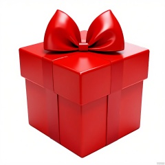 LH, A highly detailed, realistic 3D CGI image of a large, red gift box with a glossy finish. The box is square with a slightly protruding lid, adorned with a large, elegant, red ribbon bow. The lighting highlights the smooth texture and reflective surface of the box, giving it a luxurious appearance. The background is plain white, ensuring all attention is on the gift box. The style is modern and festive, suitable for holiday themes or special occasions.