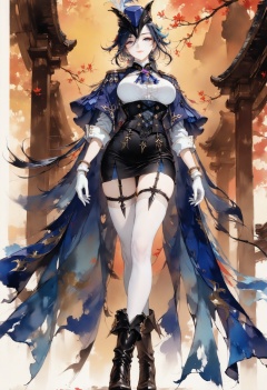 masterpiece,best quality,amazing quality,very aesthetic,sharp focus,high-end texture,(very awa,masterpiece,best quality,year 2024,newest,highres,absurdres),extremely aesthetic,dreamy atmosphere,dramatic lighting,clorinde \(genshin impact\),white gloves,tricorne,pencil skirt,ascot,fold-over boots,thigh strap,white shirt,underbust,blue cape,1girl,solo,long hair,hair ornament,eyelashes,(from below:1.1),(full body:1.1),red lips,large breasts,makeup,bracelet,earrings,necklace,seductive smile,dynamic pose,alternate costume,hanfu,chinese clothes,white thighhighs,garter straps,branch,flower,colorink,,,,<lora:colorinkV2.0:0.8>,<lora:wl-illV1-000017:0.65>,<lora:mon_monmon2133:0.4>