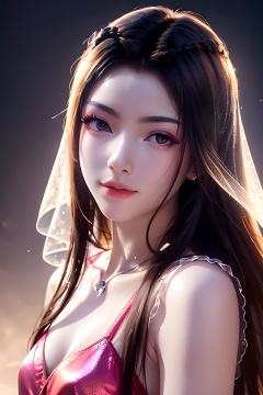 yuanyaoscore_9,score_8_up,score_7_up,source_anime,Close-up details,realistic style photo young woman,solo,long hair,big breasts,outstanding style,tall,cute,in her teens. Use soft lighting to cast gentle shadows on the subject,adding a touch of dimension to your images without compromising details,ear_ornament,hair_ornament,eyelashes,makeup,light pink eye shadow,light pink lipstick,pale skin,makeup,whirls of vapor,iridescent textures,(Anime:1.1),soft neon light,ethereal ambiance,delicate details,magical atmosphere,concept art,highly detailed,ultra-high resolution,32K UHD,sharp focus,best-quality,masterpiece,unconventional supreme masterpiece,masterful details,temperate atmosphere,with a high-end texture,in the style of fashion photography,magazine cover,Dynamic Angle,Dynamic posture,magazine cover,Dynamic Angle,Dynamic posture,1girl,dress,breasts,solo,black hair,purple dress,(veil:1.2),jewelry,cleavage,long hair,looking at viewer,necklace,flowers background,<lora:yuanyao_V0.3:0.75>,(full_shot:1.4),small chest,, masterpiece, best quality,