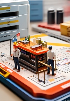 WSCJ, Photograph of a miniature e-commerce inventory management area with tiny figurines of workers scanning barcodes and organizing shelves. The figurines are focused and efficient, and the shelves are filled with neatly arranged products. The background is a light gray, with a grid pattern adding a sense of order. The lighting is bright, with clear shadows under the products. The composition emphasizes the importance of inventory accuracy and organization.