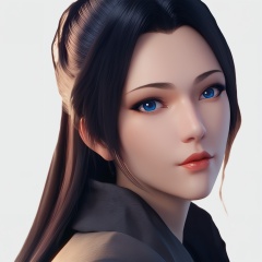 score_9,score_8_up,score_7_up,1girl,solo,blue eyes,portrait,black hair,long hair,white background,lips,simple background,<lora:yunyunblack THV3:0.8>,