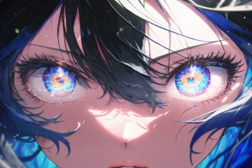 1girl,solo,multicolored eyes,light_eyes,close-up,looking at viewer,hair between eyes,eye focus,parted lips,eyelashes,blue hair,portrait,black hair,lips,beautiful detailed eyes,<lora:Insula Avallonis眼睛:1>,
