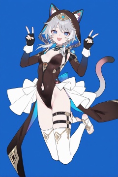 8k,best quality,masterpiece,ultra-detailed,(high detailed skin),(year 2024:0.8),flat color,artist:maidforge,artist:aqua inc.,artist:edoya inuhachi,artist:reoen,artist:fuzichoco,solo,white background,simple background,barefoot,no bra,petite,skinny,toeless_legwear,white thighhighs,indoor,looking_at_viewer,panorama,full_shot,dashed_eyes,wedding_dress,jumping,double_v,happy,<lora:Cipher-ill-Tanger-000012:0.8>,Cipher \(honkai: star rail\),cat girl,cat ears,cat tail,clothes: Cipher black clothes,1girl,blue eyes,breasts,fingerless gloves,thighhighs,boots,