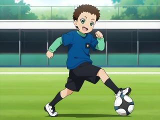 <lora:Ohta_Shou_XL:1>,do not split pictures,best quality,best detail,masterpiece,male focus,outdoors,1boy,male_child,petite,brown hair,dark green eyes,Very short hair,loungewear,football shoes,sport socks,happy,perfect hands,(5fingers:1.3),correct anatomy,soccer ball,kicking soccer ball,huge filesize,available light,front view,depth of field,