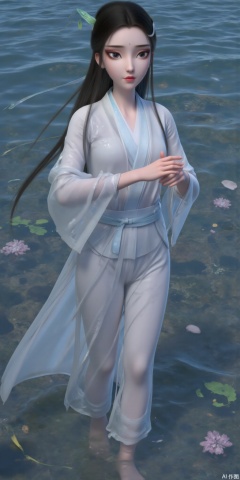 Prompt: masterpiece, best quality, ultra-detailed, detailed pupils, photography, pale, realistic skin texture, stunning details, masterpiece, best quality, ultra-detailed, detailed pupils, photography, pale, realistic skin texture,HD, ultra HD, 16K high quality, highest picture quality, masterpiece, master masterpiece, top CG rendering, realistic, real texture, real photos, cinematic, high quality, studio lighting, full body, long legs, good figure, real photos, cinematic, high quality, studio lighting,HD, 32k, best quality, 8k,,,,,,,,,A serene Asian beauty with a perfect physique, enveloped by water. She stands in the shallow end, her long hair flowing like seaweed, with a flowing shirt that wraps around her torso, completely covering her chest. The soft ripples of the water create a sense of calm, as she gazes out at the viewer with a peaceful expression.
