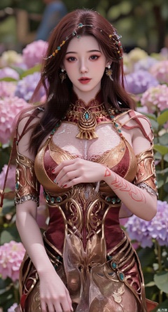 SFW,(masterpiece:1.2),best quality,absurdres,masterpiece,original,extremely detailed wallpaper,perfect lighting,1girl,solo,looking at viewer,(cowboy_shot:1.3),long hair,high heels,blurry background,depth of field,motion blur,(long dress:1.23),china_dress,chinese_style,bare shouders,crystal_earrings,headpiece,hair_tie,chest_jewel,gem,necklace,jewelry,in summer,day,outdoors,nature,garden,,(standing,Hydrangea, Hydrangea Field:1.59),(huge breasts:2.99),(full breasts:2.99),Xzhihua,Xsiyouyou,Xyanruyu,Xmoxiaonan,Xyeqingxian,Xyunwangshu,XlishaoyinY,Xxiaowu,Xyusanniang,XhuolingerHHY,Xwangqiuer,Xxuenv,XyunyunX,XqingnvzongZM,Xshangguanweier