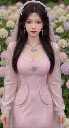 SFW,(masterpiece:1.2),best quality,absurdres,masterpiece,original,extremely detailed wallpaper,perfect lighting,1girl,solo,looking at viewer,(cowboy_shot:1.3),long hair,high heels,blurry background,depth of field,motion blur,(pink long dress:1.23),china_dress,chinese_style,bare shouders,crystal_earrings,headpiece,hair_tie,chest_jewel,gem,necklace,jewelry,in summer,day,outdoors,nature,garden,,(standing,Hydrangea, Hydrangea Field:1.59),(huge breasts:2.99),(full breasts:2.99),Xzhihua,Xsiyouyou,Xyanruyu,Xmoxiaonan,Xyeqingxian,Xyunwangshu,XlishaoyinY,Xxiaowu,Xyusanniang,XhuolingerHHY,Xwangqiuer,Xxuenv,XyunyunX,XqingnvzongZM,Xshangguanweier,XanmiaoyiXY,Xhuangnv