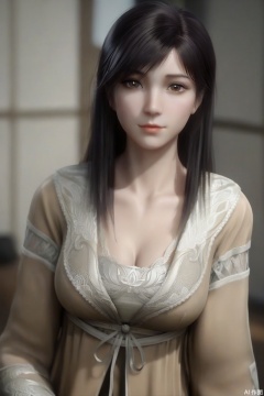 score_9_up,score_8_up,XuXin,1girl, solo, long hair, big breasts, looking at viewer, black hair, long sleeves,brown dress, cleavage, brown eyes, realistic