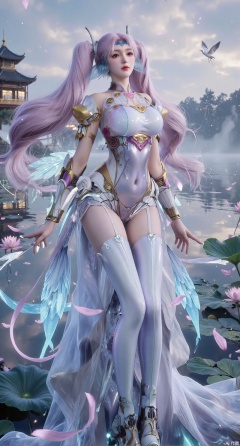 SFW,(masterpiece:1.2),best quality,1girl,solo,long hair,long dress,celestial maiden in flowing tulle gown levitates above lotus pond, ethereal mist trails from hair ribbons, mythical Penglai paradise emerges through clouds with glowing pavilions, translucent bioluminescent lotus blooms, flock of cranes gliding over water surface, ultra HD with soft 3D rendering, morning light filters through mist, falling petal rain, intricate details on scale-patterned fabric and lotus veins.(huge breasts:2.99),(full breasts:2.99),XanmiaoyiY,XhuolingerHHY,XwangqiuerKQW,Xxuenv,Xnanqiuqiu,Xhuangnv,XchuxuanerX,XchuxuanerXY,XyunyunX,XqingnvzongZM,XanmiaoyiXY,Xaichen,large natural breast,soft breasts
